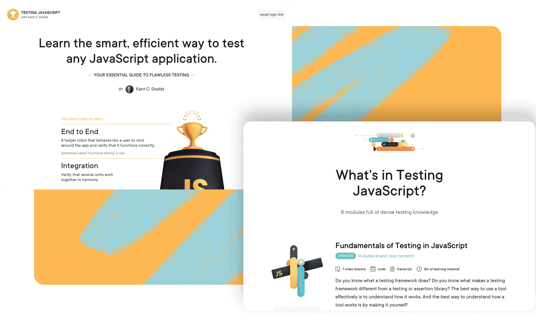 It was only natural for us to collaborate to help Kent create the absolutely best place for developers to learn React so they can create robust, high-quality, well-tested React applications that scale. He'd create the content and entrust us to take care of managing and coordinating the production, working with him from concept through to launch and beyond.