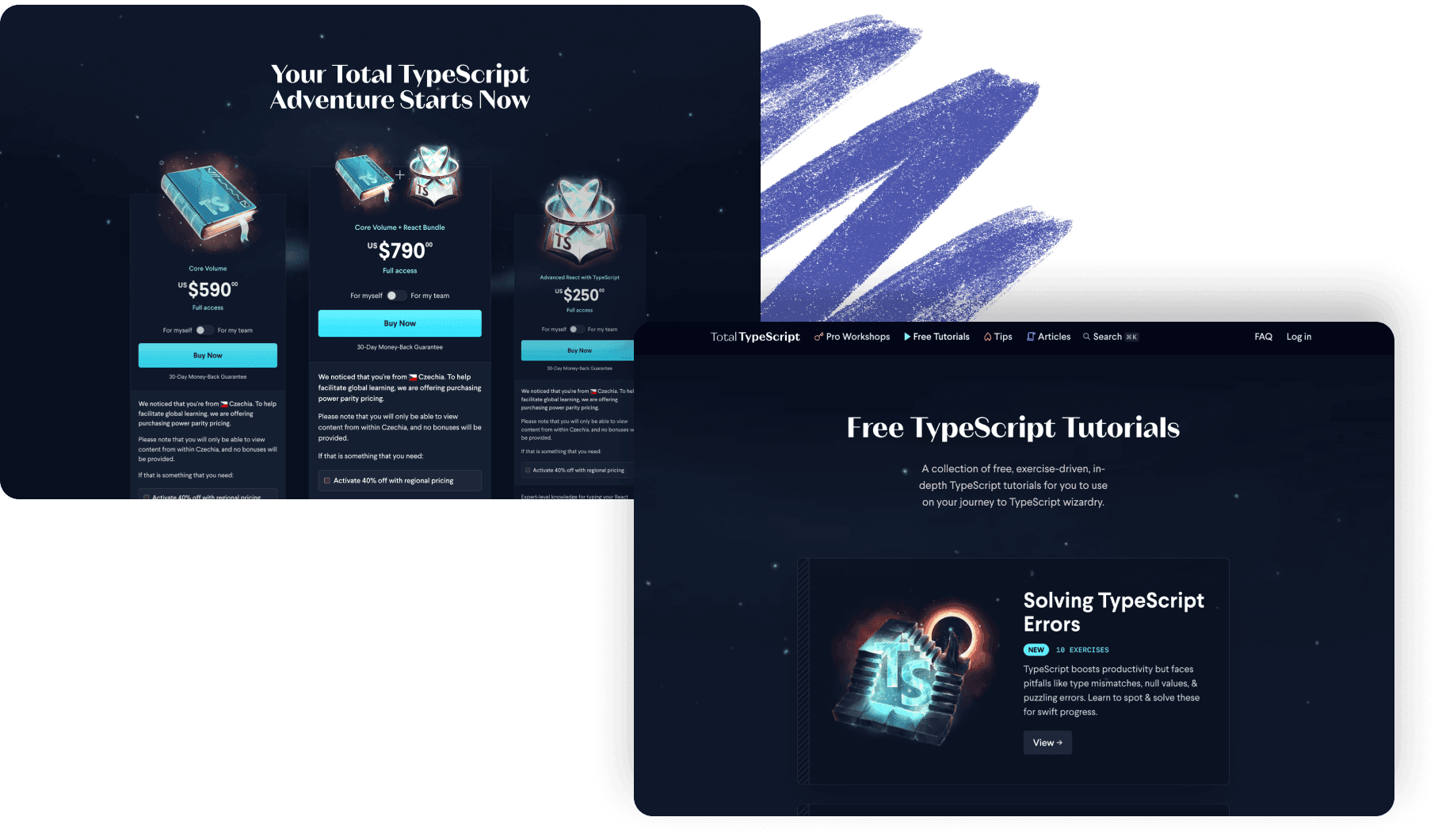 Our experience in selling developer education products covered various models, including subscriptions and one-off purchases with lifetime updates, typically in three tiers. Partnering with Matt for Total TypeScript, we recognized an opportunity to develop a more sustainable and mutually beneficial business model, diverging from our traditional approaches.
